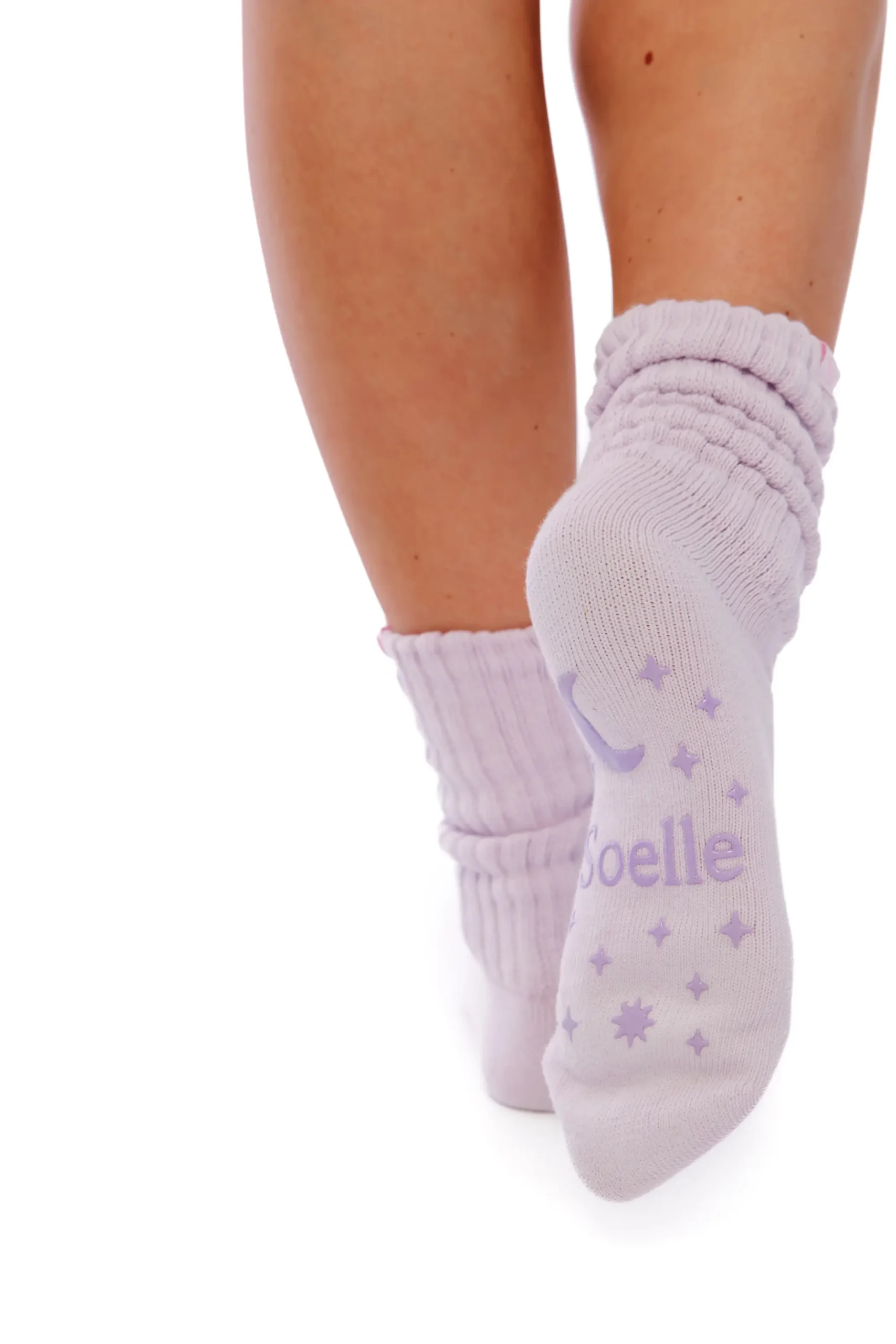 Lunar Whispers to skarpetki do pilatesu, które łączą kobiecość, funkcjonalność i bezpieczeństwo dzięki antypoślizgowym detalom inspirowanym nocnym niebem.